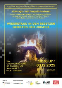 Fünfte und letzte Veranstaltung der Reihe „Russki Mir. Berichte aus den besetzten Gebieten der Ukraine“. Widerstand in den besetzen Gebieten der Ukraine
