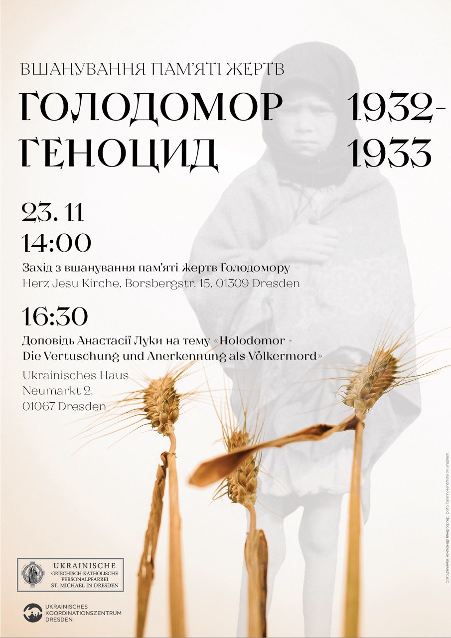 🕑 16:30 – доповідь Анастасії Луки на тему: «Holodomor – Die Vertuschung und Anerkennung als Völkermord»