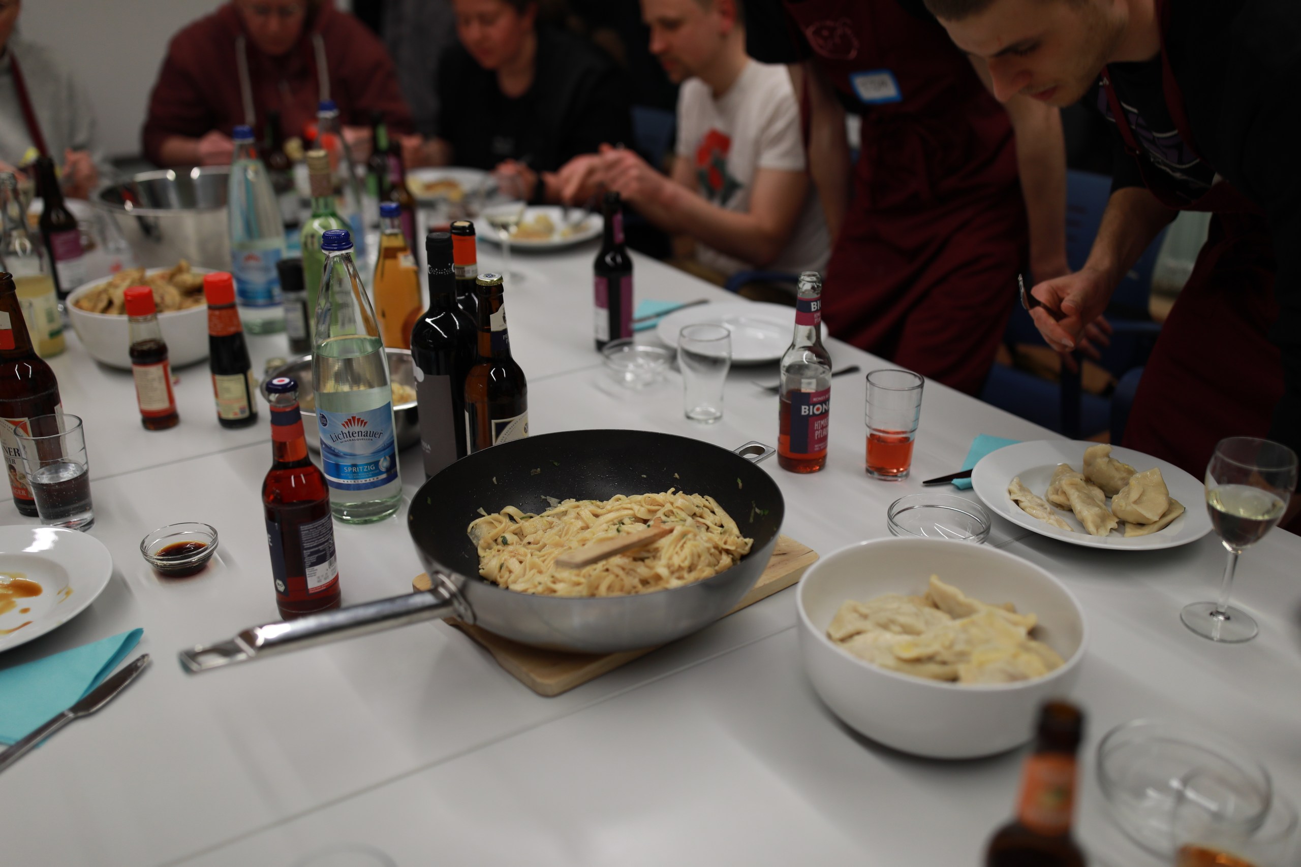 Auch die unterschiedlichen Füllungen haben es in sich: ob mit Fleisch oder vegetarisch, mit Lauchzwiebeln, Pilzen und vielen anderen Möglichkeiten. Eine Besonderheit ist der zudem der einfache, aber umwerfende chinesische Dip, dessen Zubereitung wir erlernten.