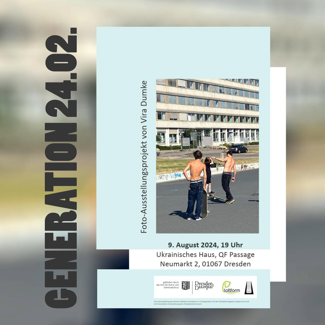 “Покоління 24.02” стало можливим завдяки щедрій підтримці Управління культури та охорони пам’яток Дрездена, Plattform Dresden e.V. та depart.one і пропонує унікальну можливість отримати глибоке уявлення про життя цих молодих людей.